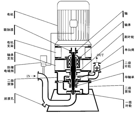 1.立柱,2.鎖緊并帽,3.工作葉輪,4.泵殼連接座,5.蝸殼,6.泵軸,7.鎖緊并帽,8.密封輪蓋板,9.密封座,10.密封葉輪,11.泵殼出口法蘭,12.支架,13.電機(jī),14.聯(lián)軸器,15.墊片A,16.墊片B,17.電動(dòng)空氣閥,18.耐磨環(huán),19.泵殼進(jìn)口法蘭,20.泵體,21.錐體,22.泵殼吸口法蘭,23.泵殼連接板,24.底板。