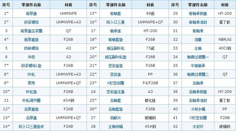 聚丙烯(P):用于無固相物料的清液的輸送。例如廢氣處理系統的逼壓噴淋泵(煙氣脫硫等)。
