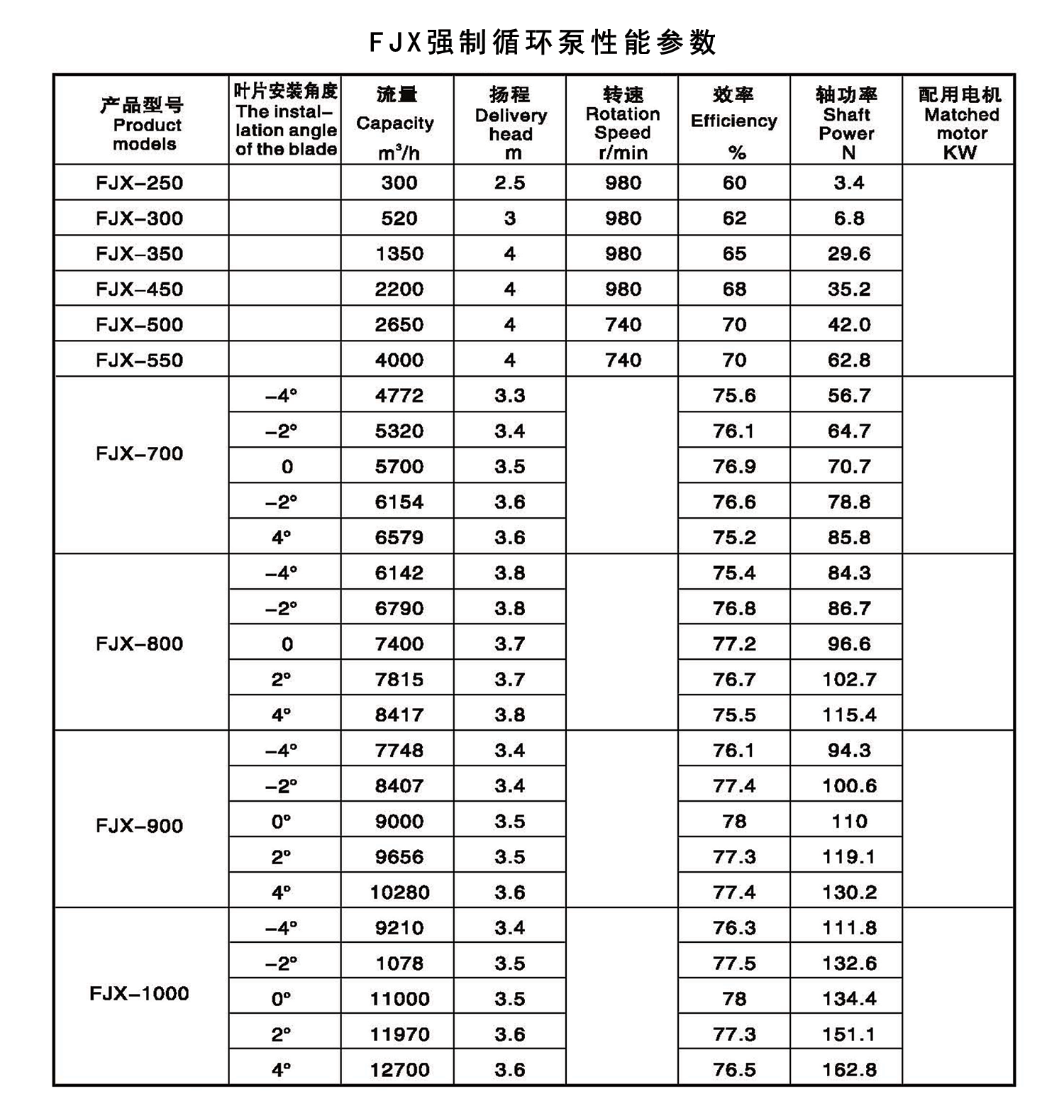 六、FJX蒸發(fā)結(jié)晶循環(huán)泵性能參數(shù)